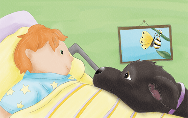 Free-Hand Digital Painting. More 3D with more solid color blocking and more lights/darks. Also good for picture and chapter books. Gives a more animated feeling than the whimsical watercolor style.