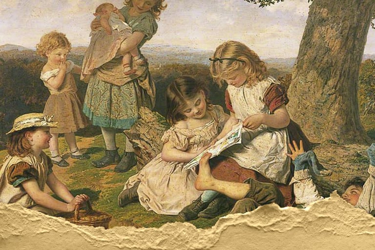 Children’s Story Book by Sophie Gengembre Anderson – Public Domain. Here, of course, we see our children growing up on stories, shaping them in their formative years.